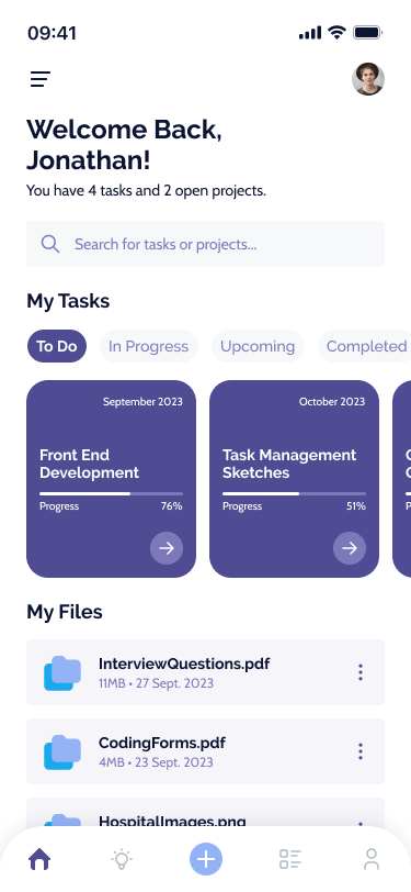 For the forty-second design by Daily UI, I was challenged to design a To-Do List or Manager UI. I designed a Task & Project Management mobile app for users to manage their tasks or projects, secure their files, and organize their tasks by: To Do, In Progress, and Completed.