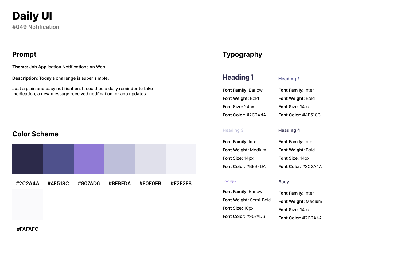 The forty-ninth design challenge by Daily UI is a Notifications UI. For this challenge, I designed a job application website. Users apply to jobs on the website and can check the notifications to see who has viewed their application or accepted their application.