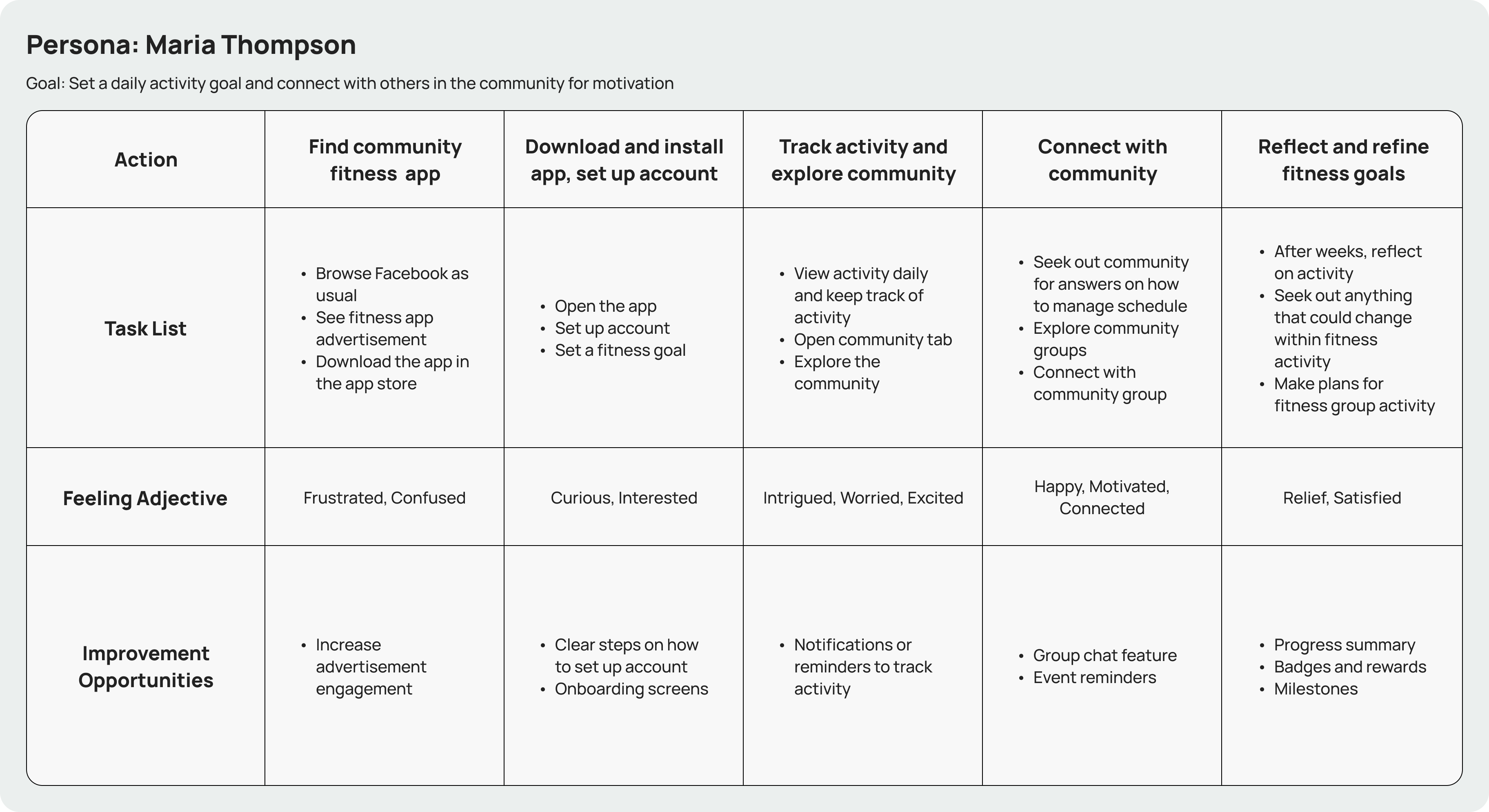A structured chart that explains what designers have learned about a specific type of user