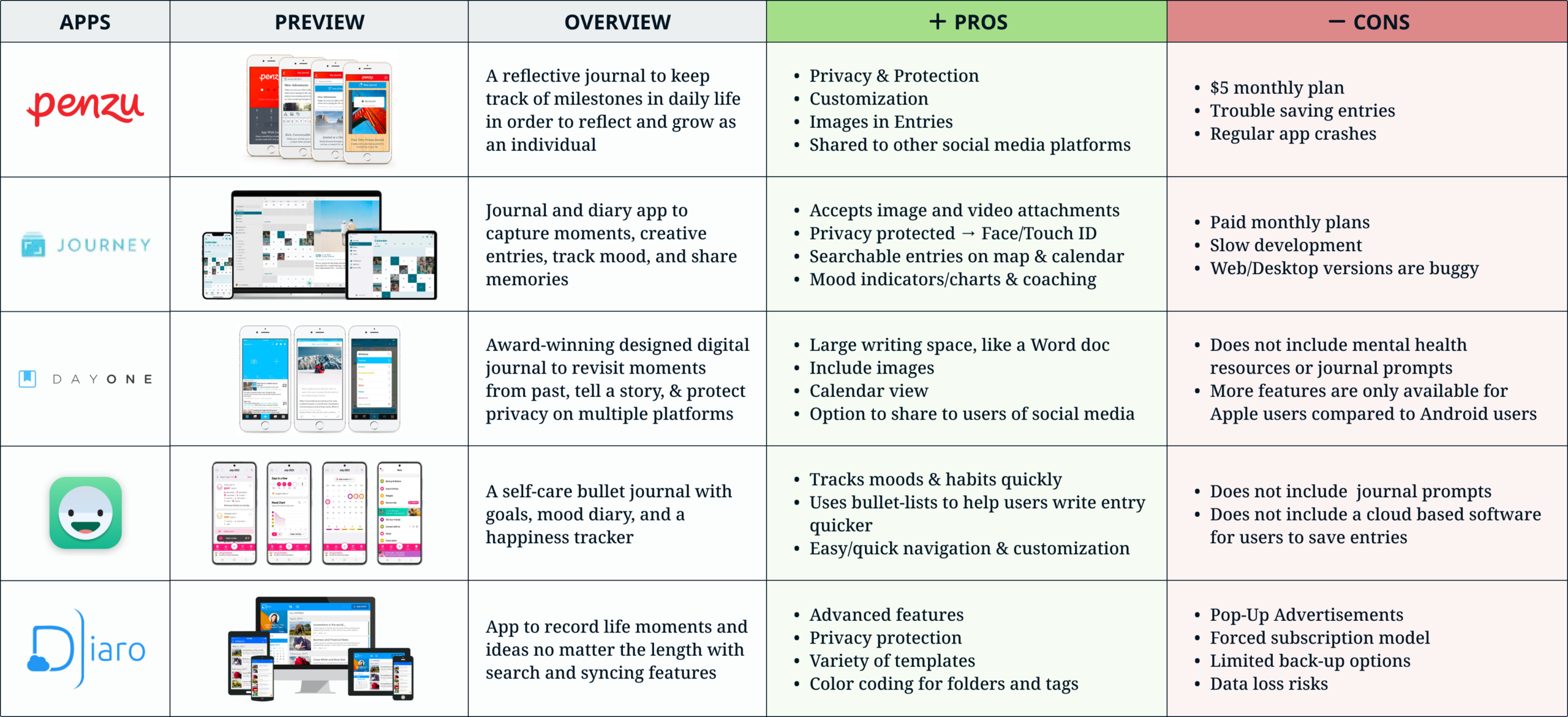 I compared 5 digital journaling platforms regarding features, usability, payment plans or options, and overall layout and style.